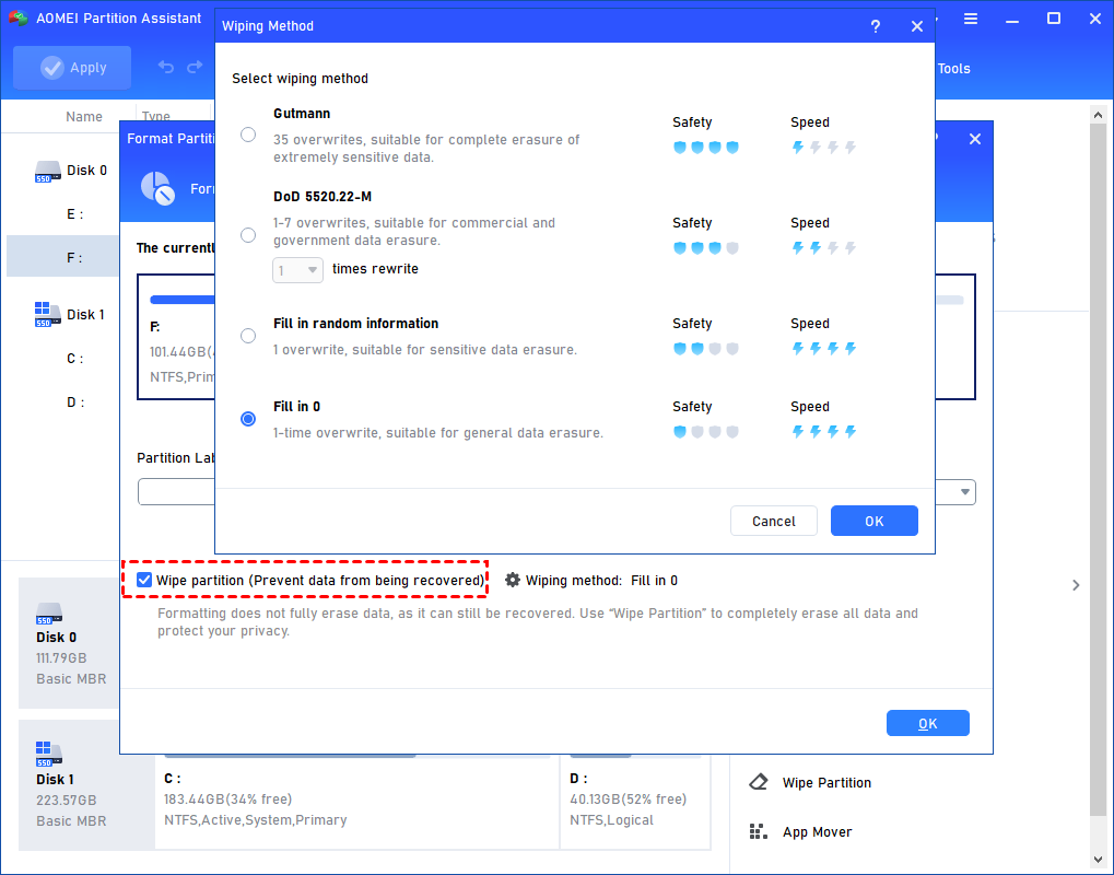 - Formatting doesn't erase the data once and for all, and anyone can successfully recover data from a formatted partition with commercial software. If you want to erase all data to prevent data from recovering with the help of related software (partition assistant can do this with its Partition Recovery Wizard), we suggest you tick the "Wipe Partition" option and select the preferable wiping method.