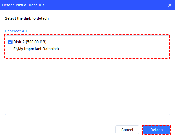 Step 2: Select the Virtual Disk(s) to Detach.