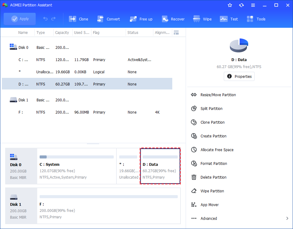 Furthermore, Partition Assistant also provides more wizards to help you quickly adjust partitions, such as allocate free space, or expand partition wizard, etc.