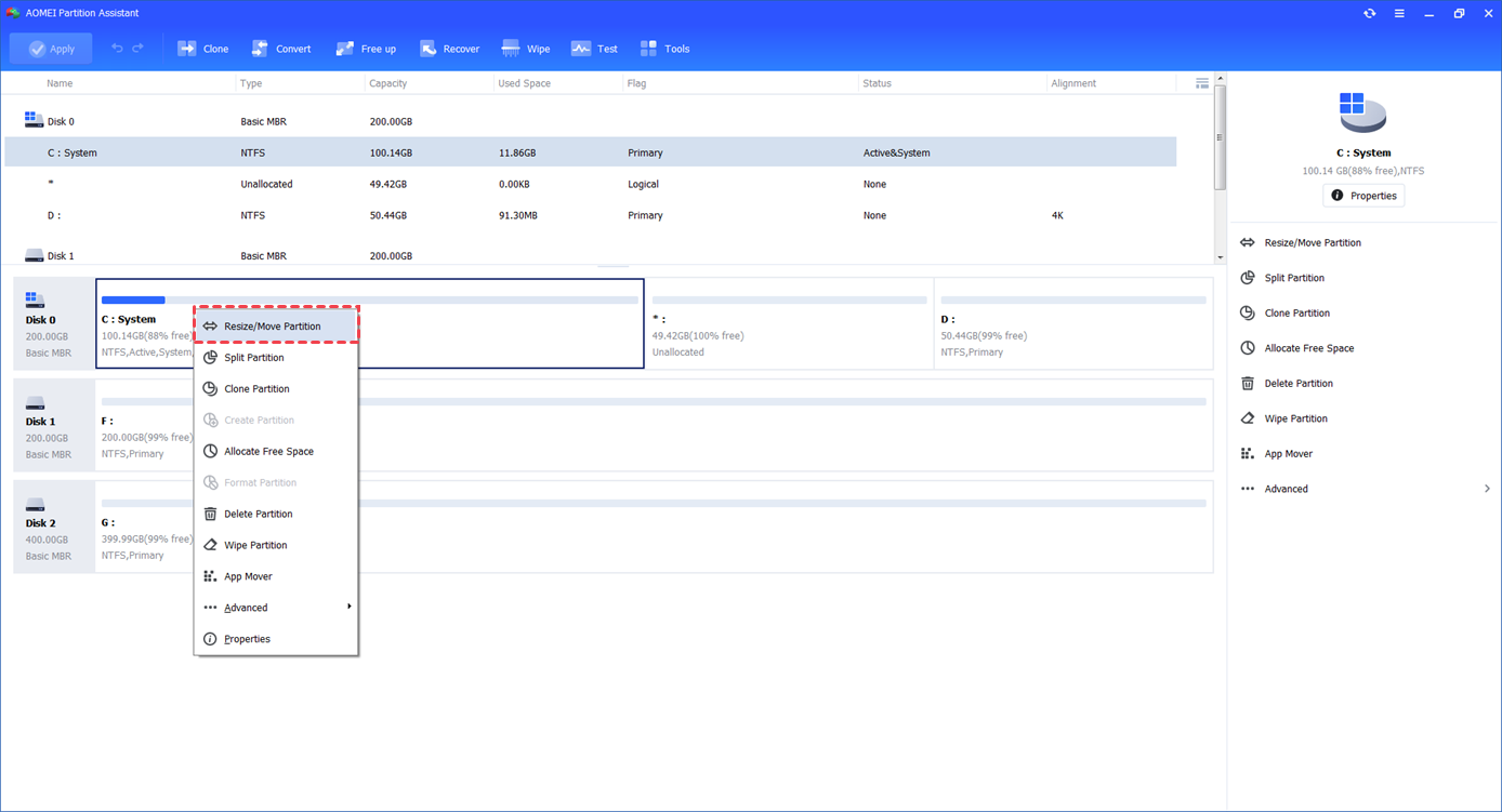 How to Resize Partition with AOMEI Partition Assistant?