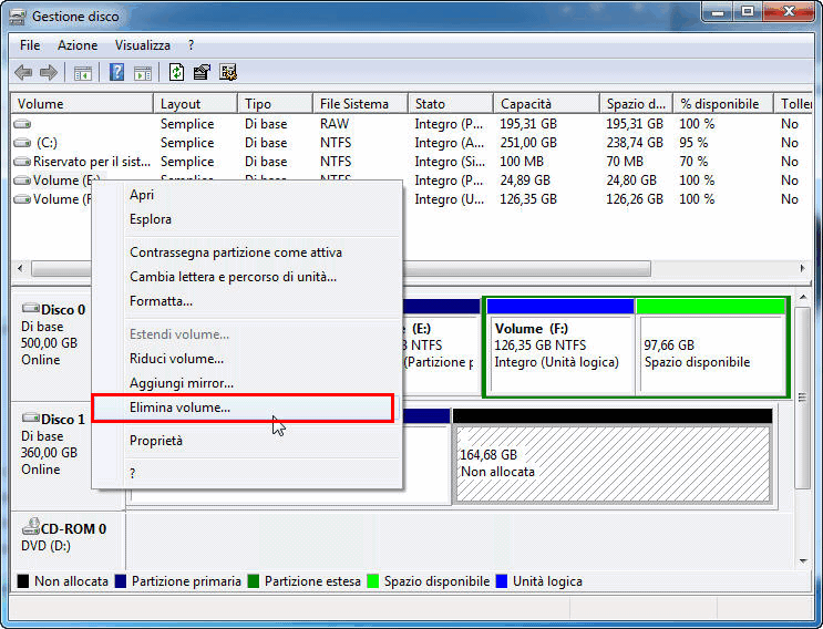 Metodo 2. Utilizzare Gestione disco per modificare la partizione da Ext4 a NTFS