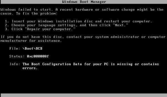 La ricerca online, ad eccezione di "Dati configurazione di avvio per il PC è mancanti o contiene errori", non è difficile trovare errori simili sul file BCD di avvio e Windows non è stato avviato. Per esempio: