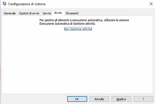 Passo 4. Nella finestra di "Configurazione di sistema", vai su "Avvio" e fai clic su "Apri Gestione attività".