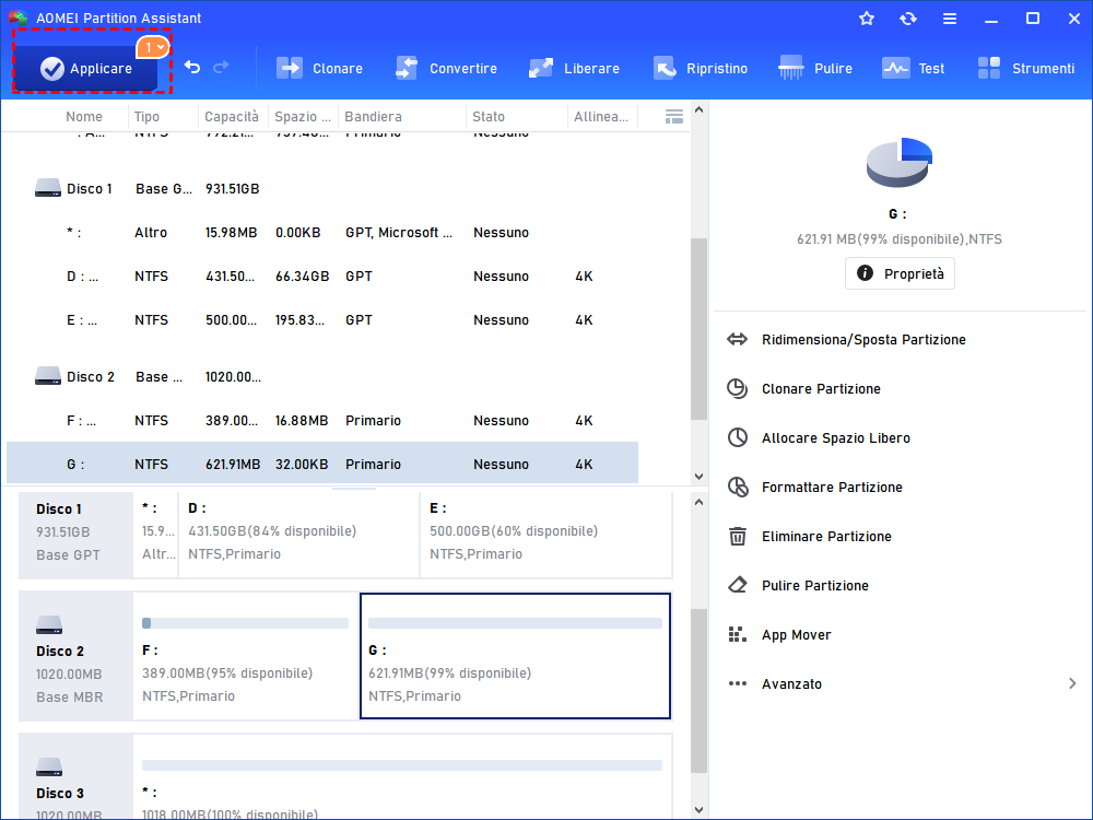 Ti consiglio di provare AOMEI Partition Assistant Standard, che è in grado di cambiare il sistema di file FAT32 in NTFS su hard disk esterni, hard disk interni, penne USB, schede SD senza perdita di dati. Questo potente software ti permette anche di convertire da NTFS a FAT32 senza formattazione, se necessario.