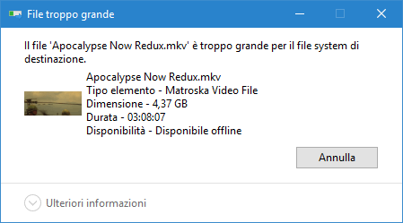 File Troppo Grande per Essere Copiato su Hard Disk Esterno