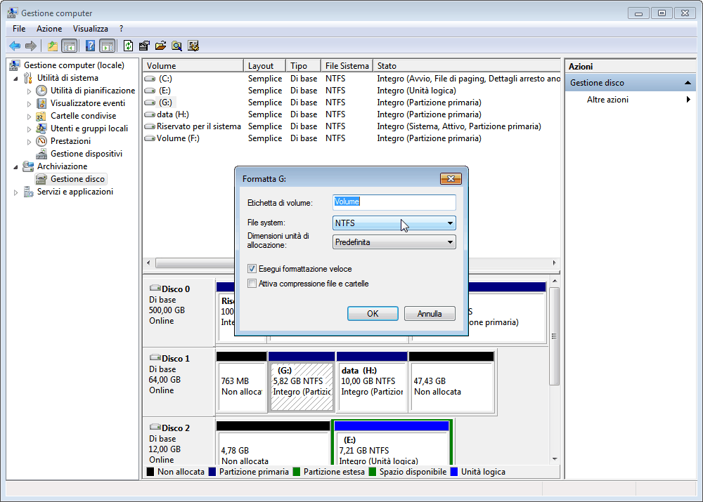Formattare un'unità USB non riconosciuta con Gestione disco
