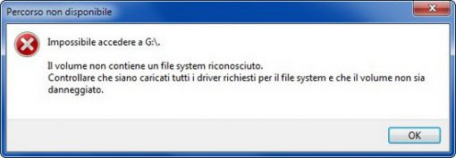 Errore: Il volume non contiene un sistema di file riconosciuto su chiavetta USB