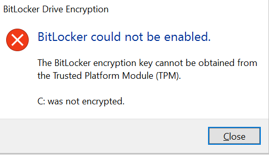 Panoramica dell'errore “Impossibile abilitare BitLocker”