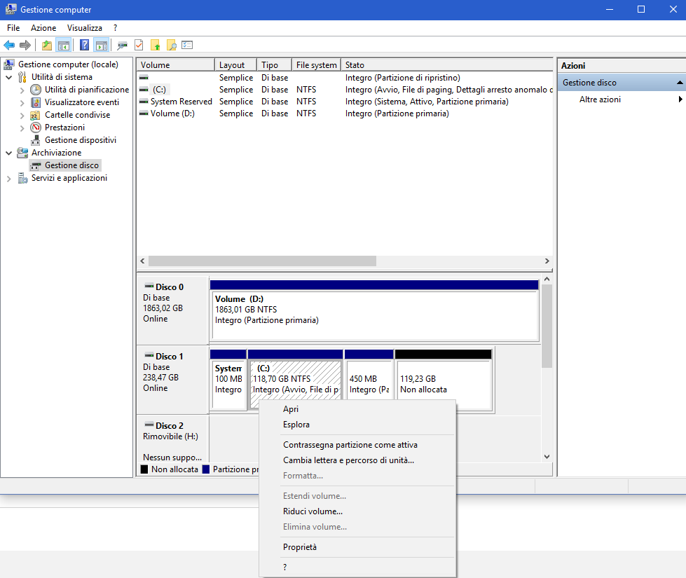 Risolto: Impossibile Estendere il Volume sullo spazio non allocato in Gestione Disco