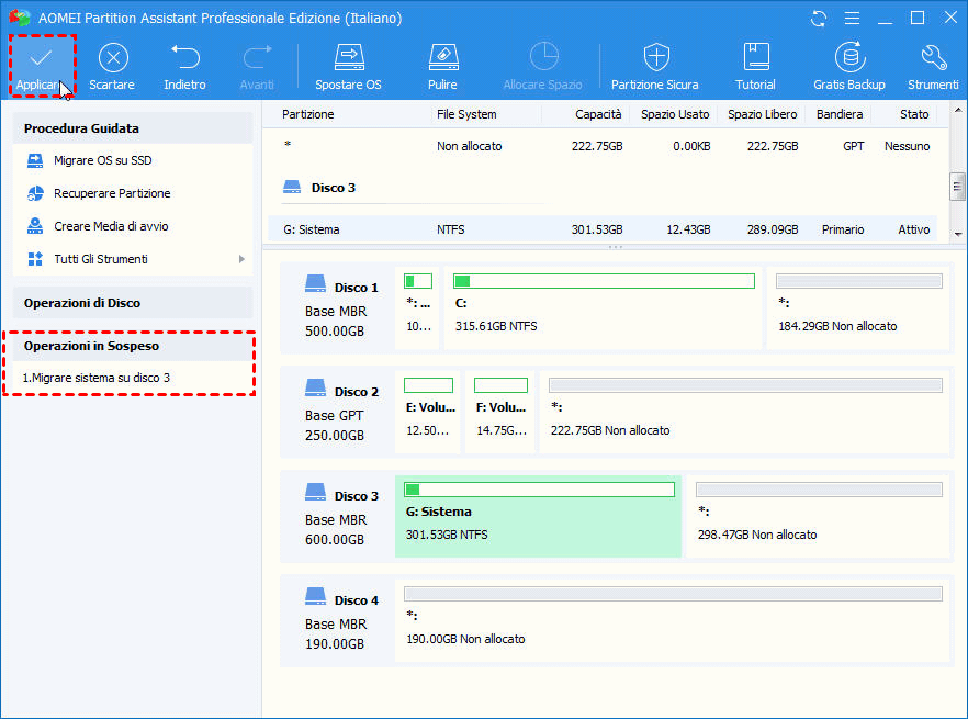 Passo 6. Per completare l'operazione, fare clic su "Applicare". Il processo di trasferimento Windows da hard disk a SSD M.2 sarà completato in breve tempo.