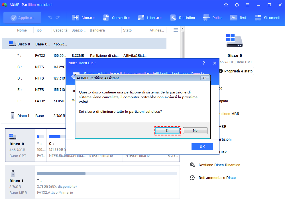 È abbastanza facile pulire un hard disk con sistema operativo utilizzando il software potente AOMEI Partition Assistant. In effetti, è anche un'utilità di formattazione del hard disk avviabile e può facilmente formattare l'unità di sistema. La versione Professional avanzata ha funzioni più utili adatte agli utenti avanzati, come lo spazio libero allocato da una partizione all'altra, convertire il disco di sistema tra MBR e GPT e convertire tra disco dinamico e disco di base, migrare OS su SSD, ecc.