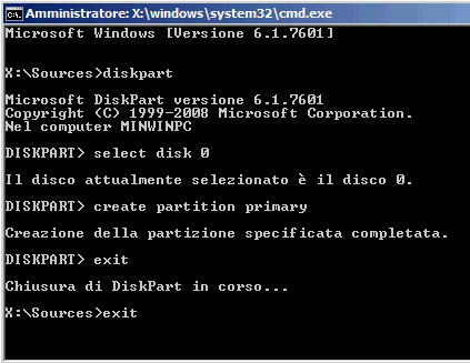Metodo 1. recuperare lo spazio non assegnato usb con Diskpart