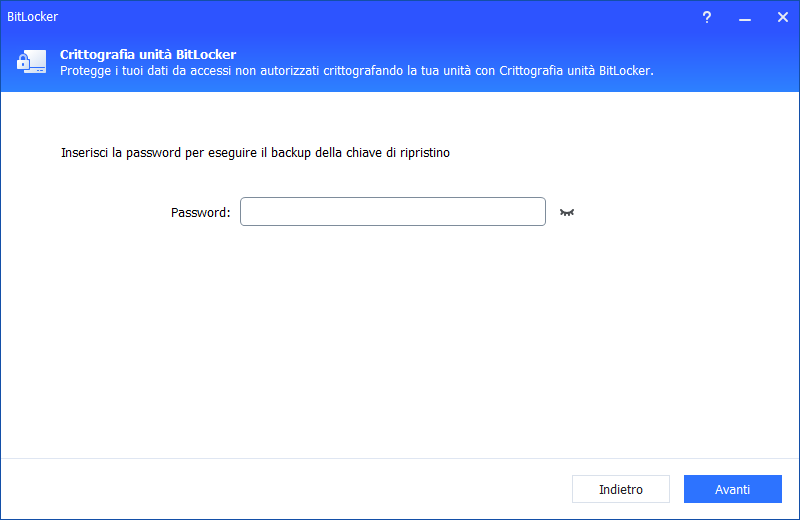 La chiave di recupero BitLocker, nota anche come chiave di recupero Microsoft/Windows, è una sequenza unica di 48 cifre generata automaticamente quando abiliti la crittografia BitLocker su un'unità. Questa chiave è essenziale per recuperare l'accesso ai tuoi dati crittografati in caso di dimenticanza della password o di problemi come modifiche hardware o guasti del sistema. Per evitare di perdere l'accesso ai tuoi dati, conserva la chiave di recupero in modo sicuro: puoi salvarla su una chiavetta USB, collegarla al tuo account Microsoft o stampare una copia da tenere in un luogo sicuro.