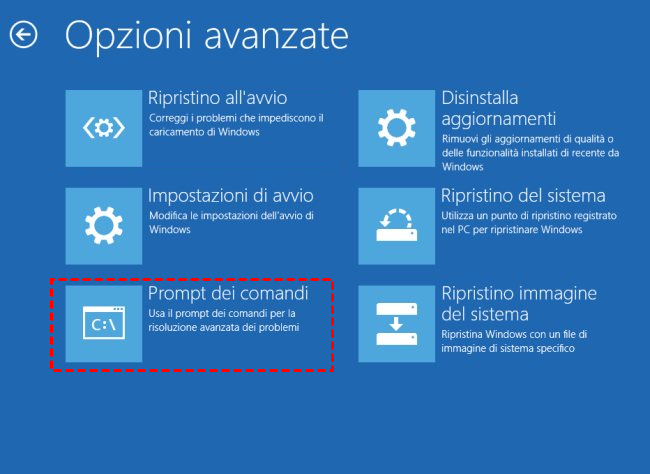 Passaggio 2. Naviga su Risoluzione dei problemi > Opzioni avanzate > Prompt dei comandi.