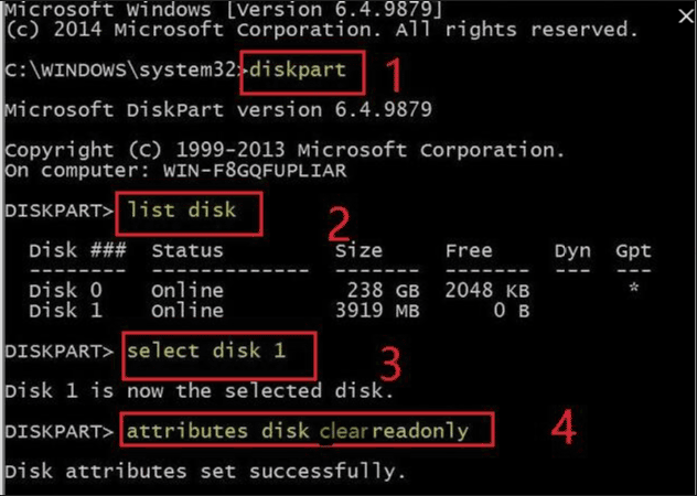 3. Digitare “select disk n”, dove n è il numero di unità flash USB SanDisk protezione da scrittura, microSD, SSD, ecc.