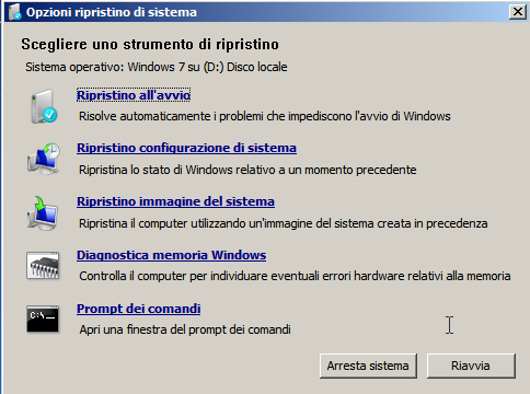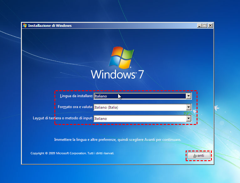 1. Avviare il computer dal CD/DVD di installazione di Windows 7.