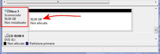 → Soluzione 2: Disco sconosciuto, non inizializzato, nessuna dimensione: