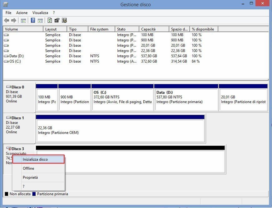 ▶Soluzione 2: Disco sconosciuto, non inizializzato, nessuna dimensione