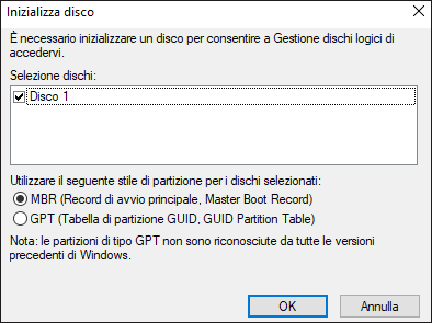 → Soluzione 1: Disco sconosciuto, non inizializzato, non allocata: