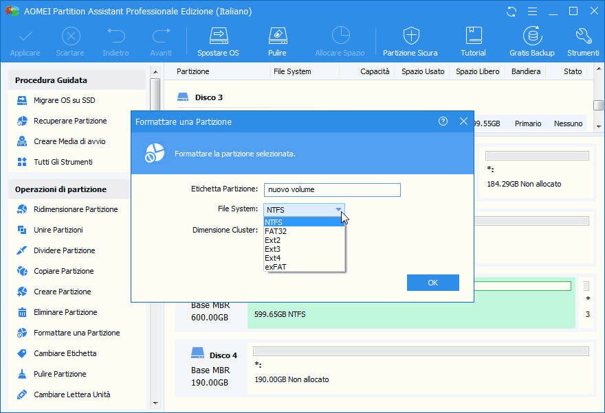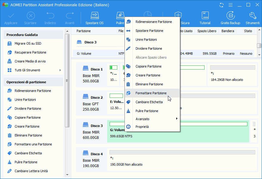 AOMEI Partition Assistant è la tua ottima scelta che è un freeware di consente di formattare Verbatim USB. Non hai bisogna di tanto tempo.