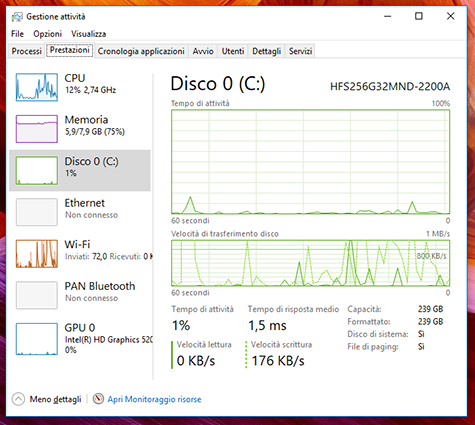 Come puoi vedere, ci sono informazioni limitate che puoi ottenere da Gestione attività sulla velocità del vostro disco rigido esterno. Se volete sapere di più sulla velocità dei dischi rigidi esterni, dovete cercare altri modi.