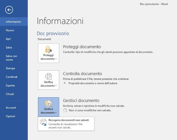 Segui questi passaggi per ripristinare i file Word non salvati (valido per Word 2010-2019):