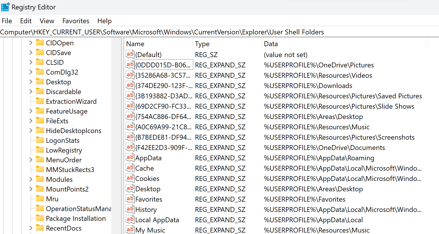 Passo 2. Fai clic su HKEY_current_user > Software > Microsoft > Windows > CurrentVersion > Explorer > User Shell Folders > %USERPROFILE%