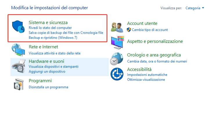 Passaggio 1. Apri "Pannello di controllo" digitandolo nella barra di ricerca e quindi fai clic su "Sistema e sicurezza".
