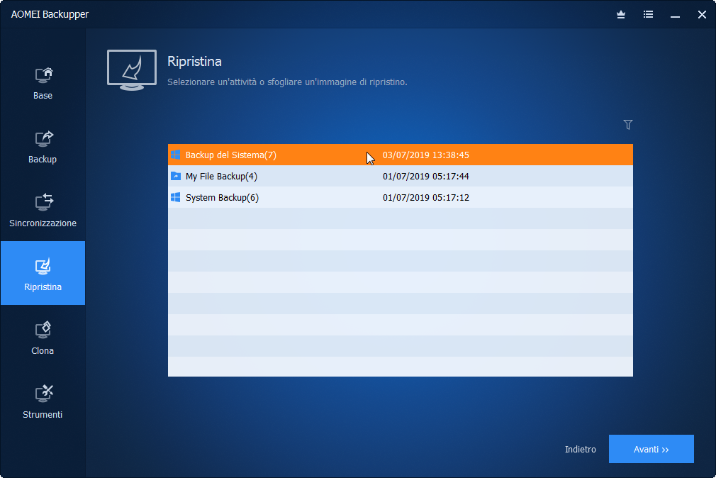Passo 2. Visualizza le versioni di backup disponibili, scegli quella desiderata e premi "Avanti" per procedere.