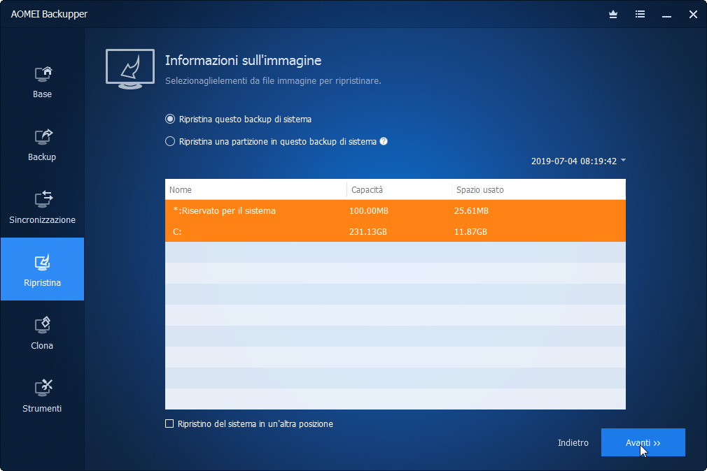Passo 3. Dopo aver selezionato il file di backup, scegli "Ripristina questo backup di sistema" e clicca su "Avanti" per procedere.