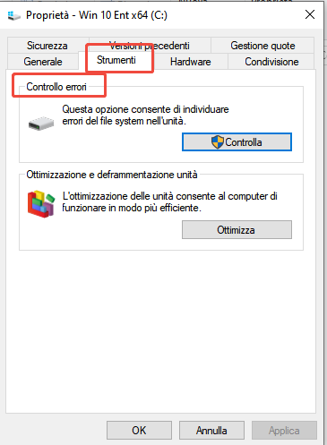 Passo 4. Avvia il controllo del disco, sotto la voce "Controllo errori", clicca sul pulsante "Verifica".