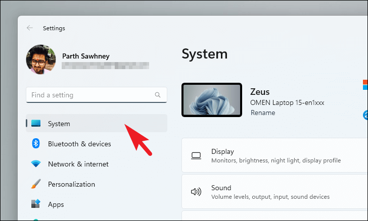 Passo 1. Inizia accedendo al Menu Start e selezionando il riquadro Impostazioni. In alternativa, esegui una ricerca per Impostazioni nel menu. Assicurati di aver scelto la scheda Sistema nella barra laterale sinistra.