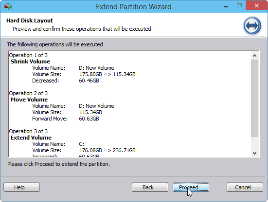 Nelle immagini precedenti si può notare che è possibile scegliere un volume non adiacente come volume sorgente per allocare il suo spazio libero al volume C senza cancellare o formattare.