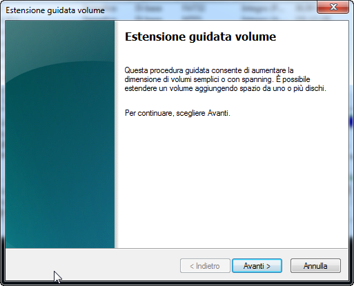 4. Si aprirà la procedura guidata per l'estensione del volume. Basta fare clic su Avanti per continuare.