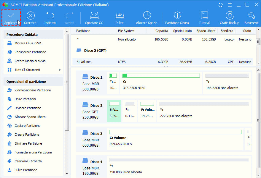 3. È possibile rivedere l'operazione nell'interfaccia principale. Controllare l'operazione in sospeso e fare clic su "Applicare"