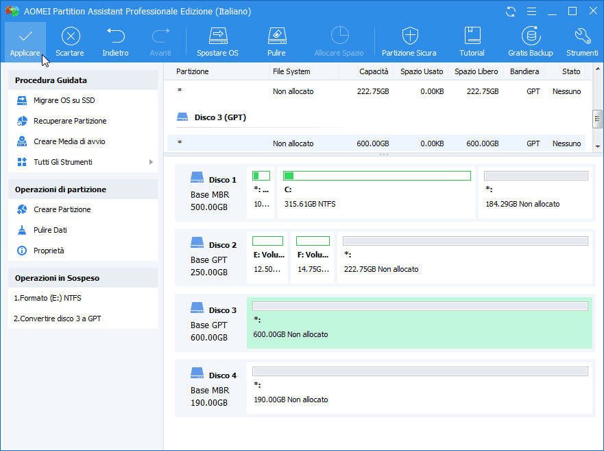Questa utility offre un'interfaccia grafica più facile da usare per gli utenti che non hanno esperienza con i computer. è in grado di convertire i dischi tra MBR e GPT senza cancellare partizioni o dati. Vi aiuterà a godere della libertà di personalizzare e ottimizzare la vostra configurazione di archiviazione come mai prima d'ora.