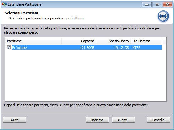 Passo 4. Scegliere la partizione da dividere per rilasciare spazio libero. Poi cliccare Avanti.