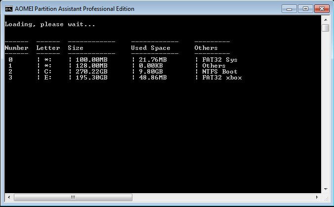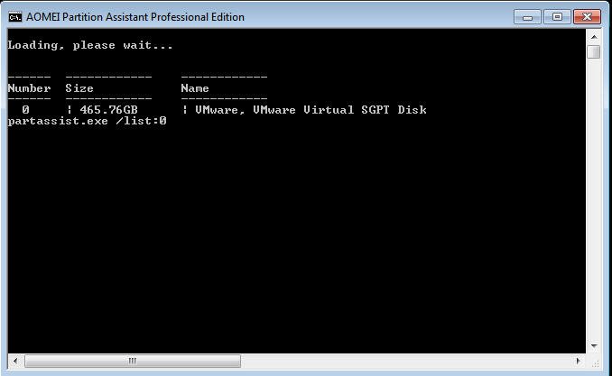 2). Si salta al prompt dei comandi AOMEI Partition Assistant e elenca tutti i dischi del computer.