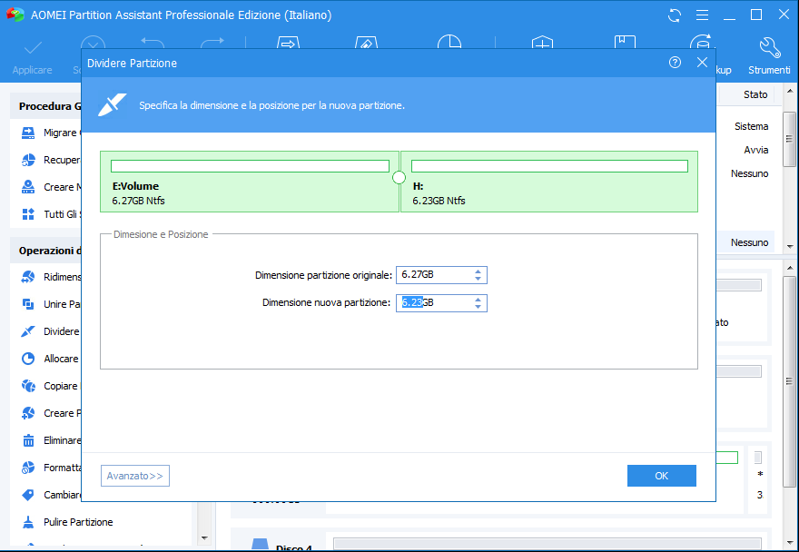 Partizione Ridimensiona: Supporto di reimpostare dimensione della partizione durante partizione di suddivisione.