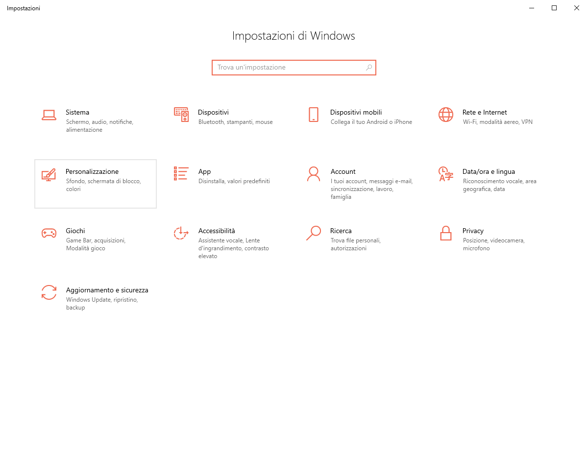 Passaggio 1. Apri Impostazioni e poi clicca su Personalizzazione.