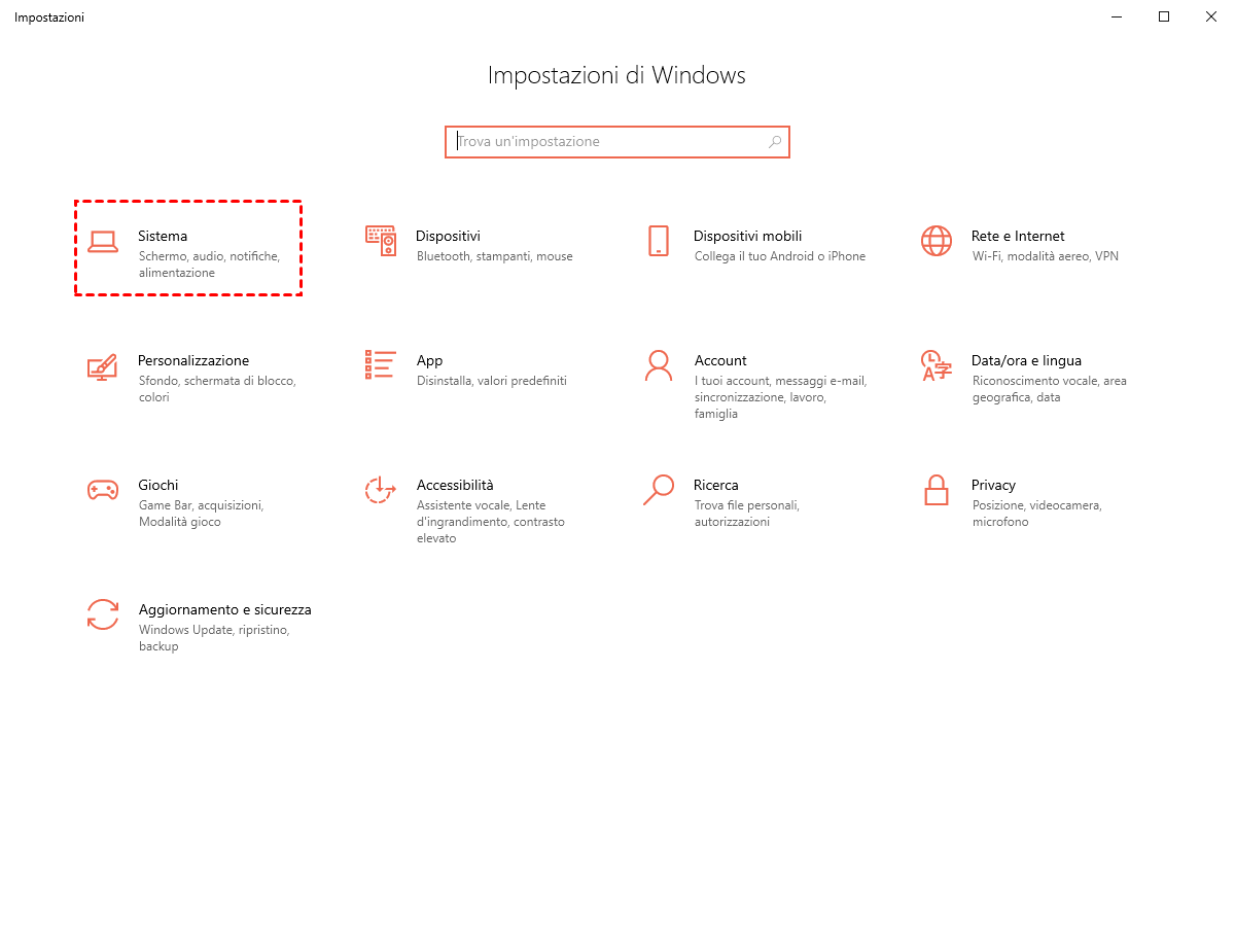 Passaggio 1. Premi contemporaneamente i tasti "Windows + I" per aprire la finestra Impostazioni, quindi fai clic su “Sistema”.