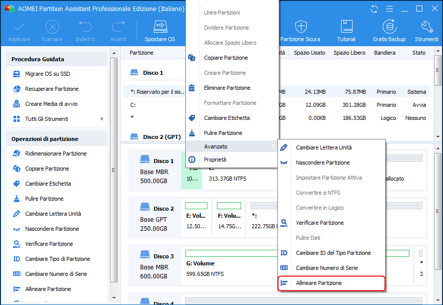Sta per spiegare come allineare la partizione con AOMEI Partition Assistant passo dopo passo.