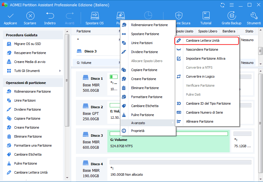 Cambiare Lettera Unità - Partition Assistant Aiuto