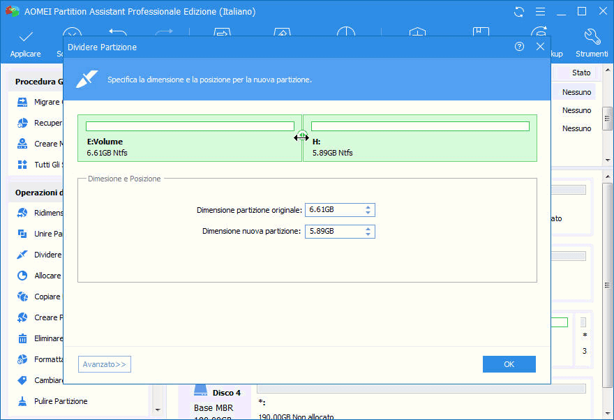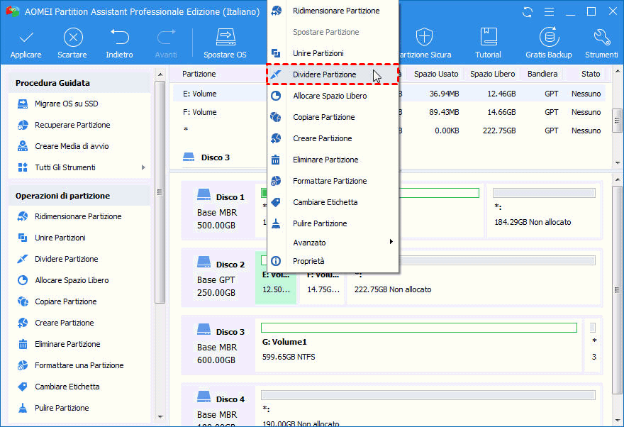 Come Dividere Partizione con AOMEI Partition Assistant?
