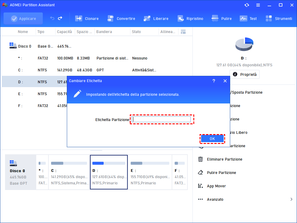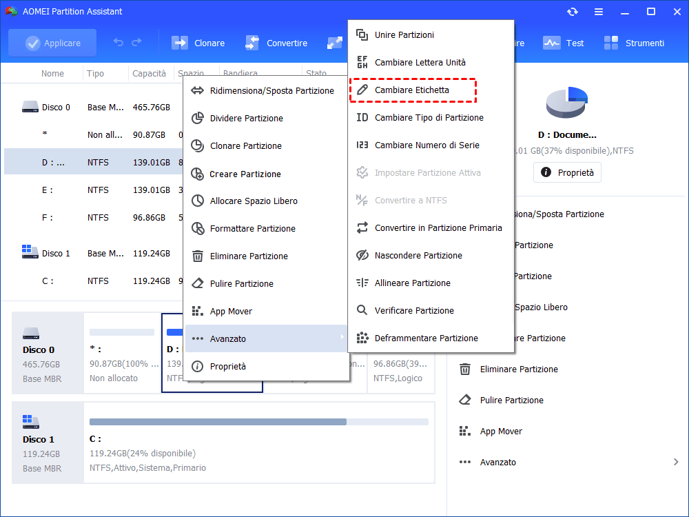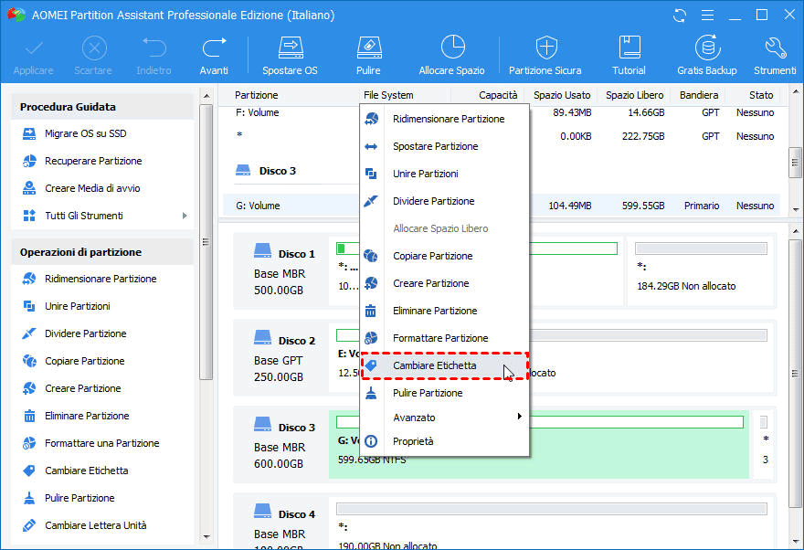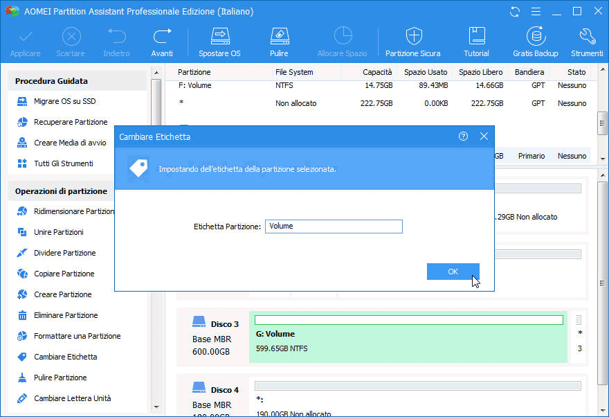 Impostare Etichetta Partizione - AOMEI Partition Assistant Aiuto