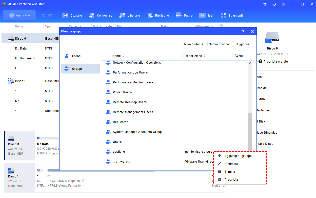 Come creare e gestire gruppi locali su un computer con AOMEI Partition Assistant