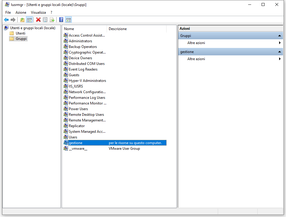 Alla fine, vedrai che il gruppo è stato creato correttamente in Utenti e Gruppi locali di Windows. Potrai anche gestire facilmente il nuovo gruppo.