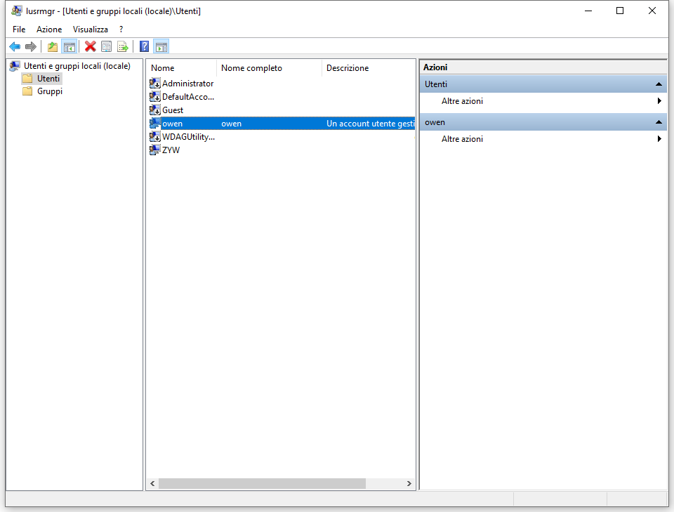 Alla fine, vedrai che l’utente è stato creato correttamente in Utenti e Gruppi locali di Windows. Potrai anche gestire facilmente il nuovo account.