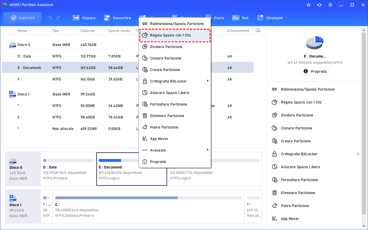 Come regolare lo spazio delle partizioni con 1 clic in AOMEI Partition Assistant