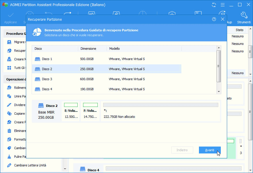 AOMEI Partition Assistant Professional dovrebbe essere il miglior software di recupero partizioni. La sua Partition Recovery Wizard può aiutarti a recuperare partizioni perse o eliminate in pochi semplici passaggi. Qui ti forniamo i dettagli su come recuperare una partizione in Windows 11/10/8/7 con AOMEI Partition Assistant.
